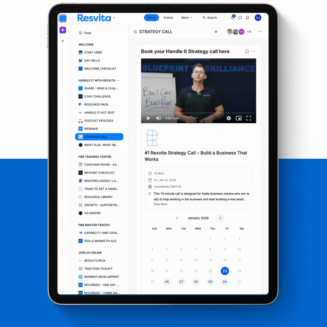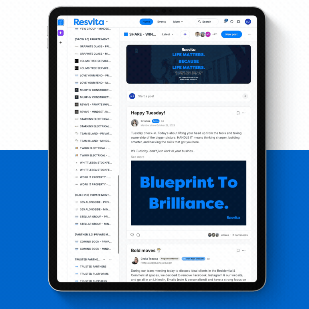 The community is designed for trade-based business owners who want more than busy work. If you’re a tradie looking to improve systems, grow profits, and gain business freedom, the Resvita Community provides the insights and support you need.