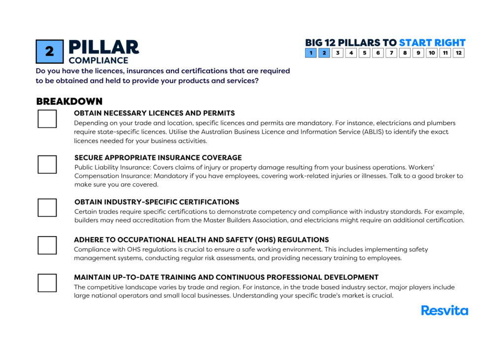 Start by reviewing your compliance setup and identifying your biggest risk areas. If you want a clearer structure, explore the Resvita frameworks designed to help tradies build strong, scalable businesses—without the chaos.