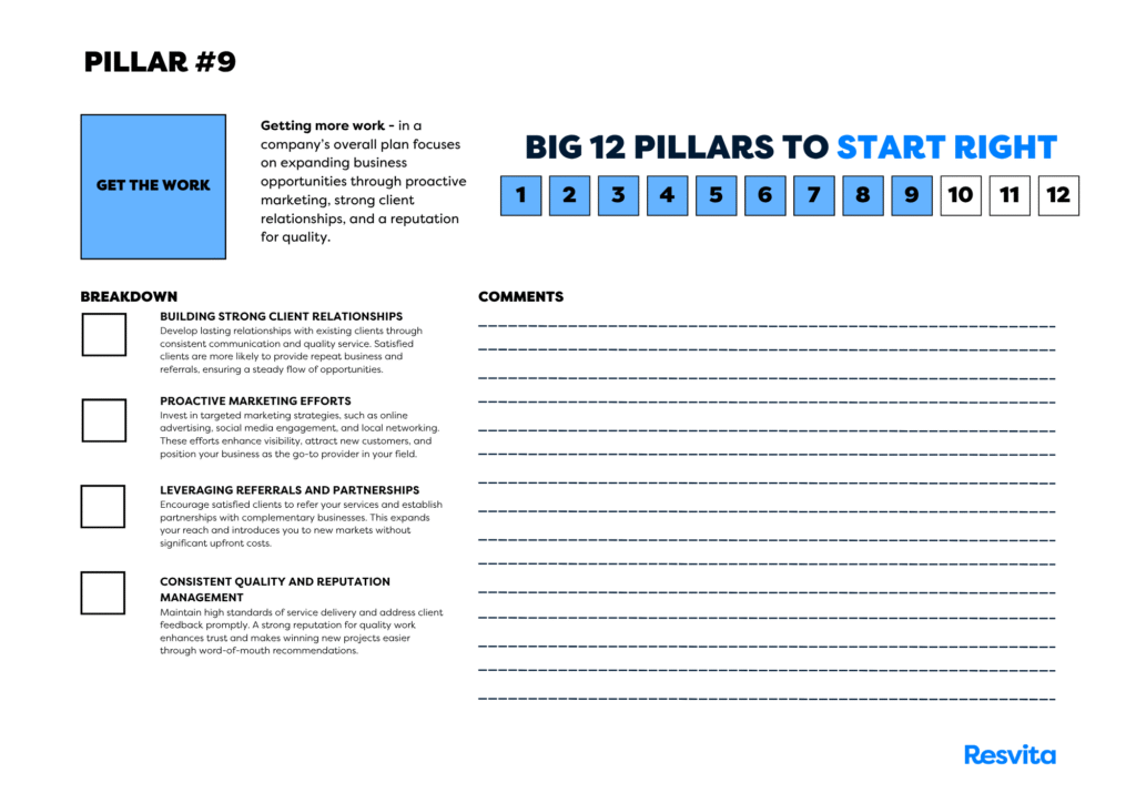 Pillar 9 of the ResVita 12 Big Pillars is about creating steady, reliable growth. By learning how to get more work for tradies, you secure your pipeline, strengthen your reputation, and gain the freedom to choose the jobs that matter most.