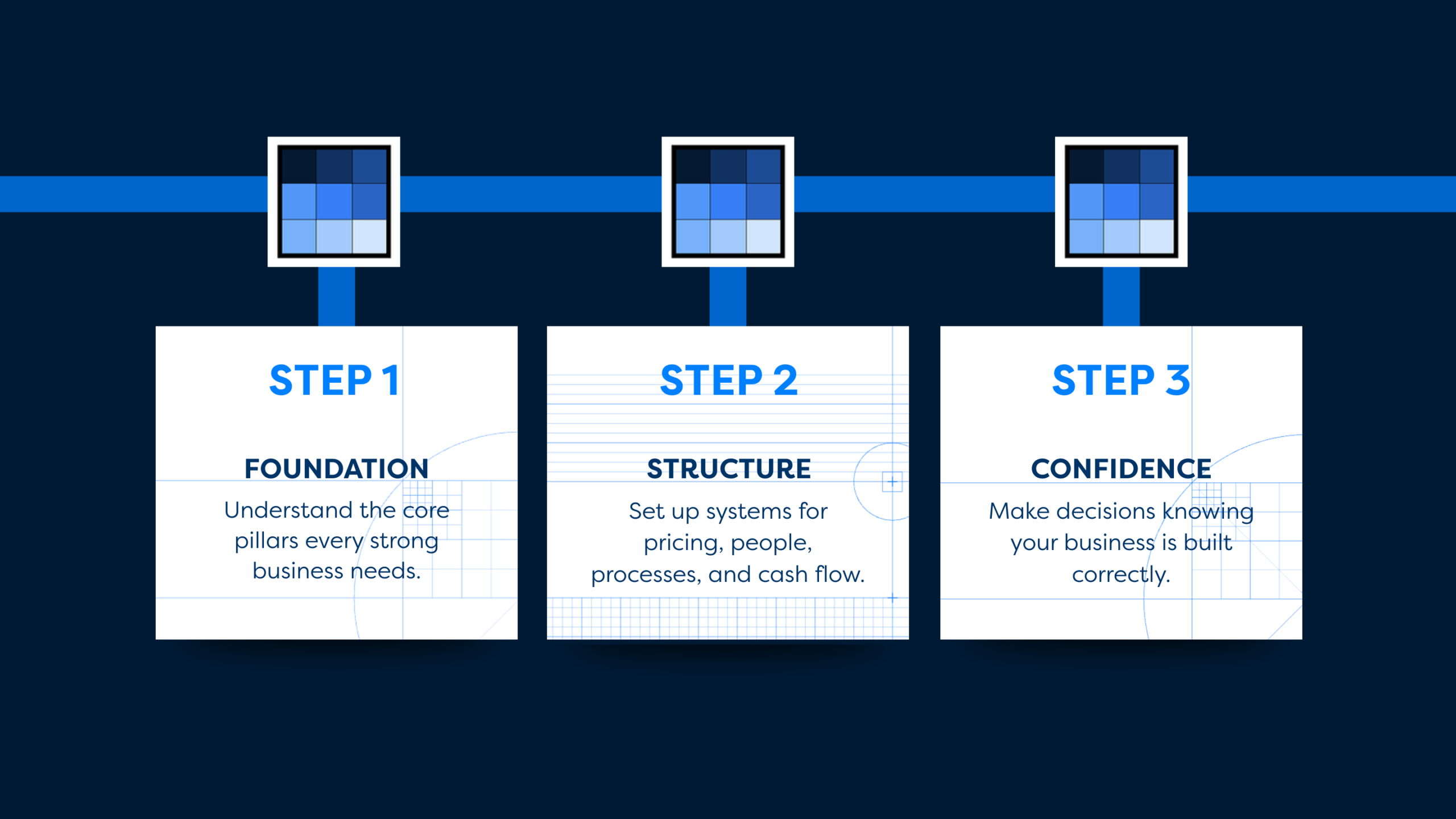You’ll focus on the Big 12 business foundations, including pricing, people, processes, and cash flow systems, so you can start making confident decisions from day one.